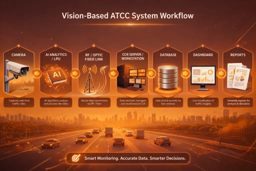 Varishtham Infracom offers an advanced Vision-Based Automatic Traffic Counting and Classification (ATCC) system designed for accurate, real-time traffic monitoring on highways and urban roads. The solution uses AI-powered video analytics to detect, count, and classify vehicles lane-wise with high precision.